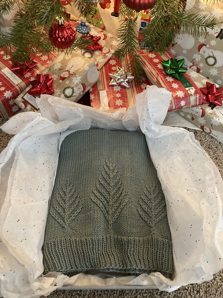 - Link to Ravelry project page: Mom’s Christmas Tree Sweater.