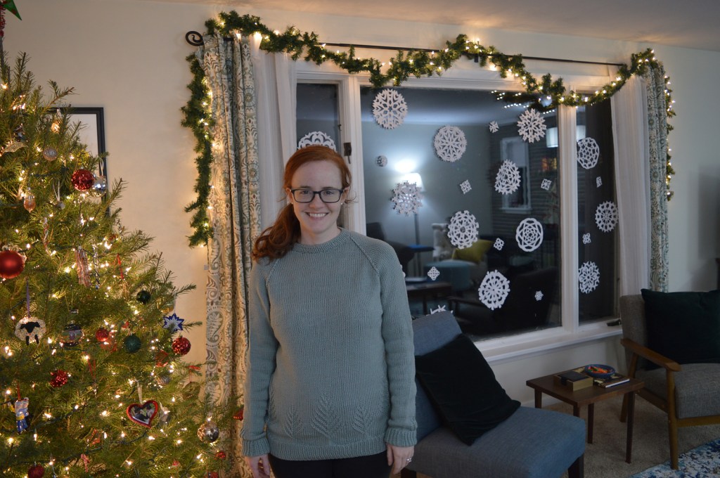 - Pattern: Christmas Tree Sweater by Kaitlin Barthold.